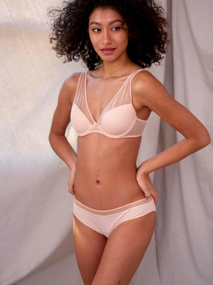 This new super lightweight bra feels like breeze. Made with soft mesh and designed so you forget about it while wearing it, this bra provides a plunge yet secure neckline as well as sporty look.